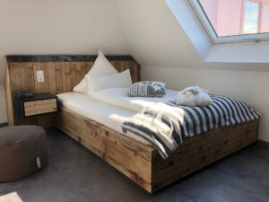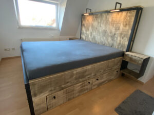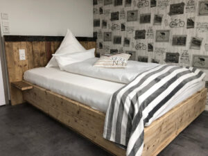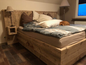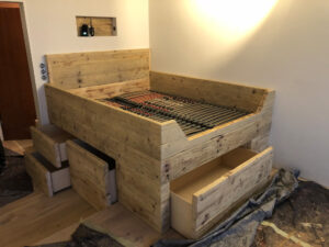 Zur Ruhe kommen, richtig gut schlafen können, den halben Sonntag im Bett verbringen oder Trampolin springen mit den Kids? Wir bauen dir dein Bett so, wie du es brauchst, als Ruheinsel oder als Familienhüpfburg. Und kein Werkstoff ist besser geeignet als gutes Holz: natürlich, strapazierfähig, warm. Ob mit Überlänge oder Kinderbett, als Einzelstück oder gleich das ganze Schlafzimmer. Wir realisieren deine Schnarchinsel und dein Gute-Nacht-Tischchen.