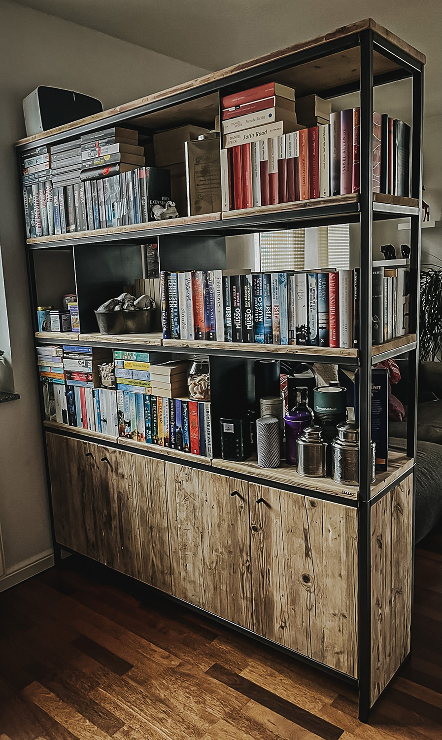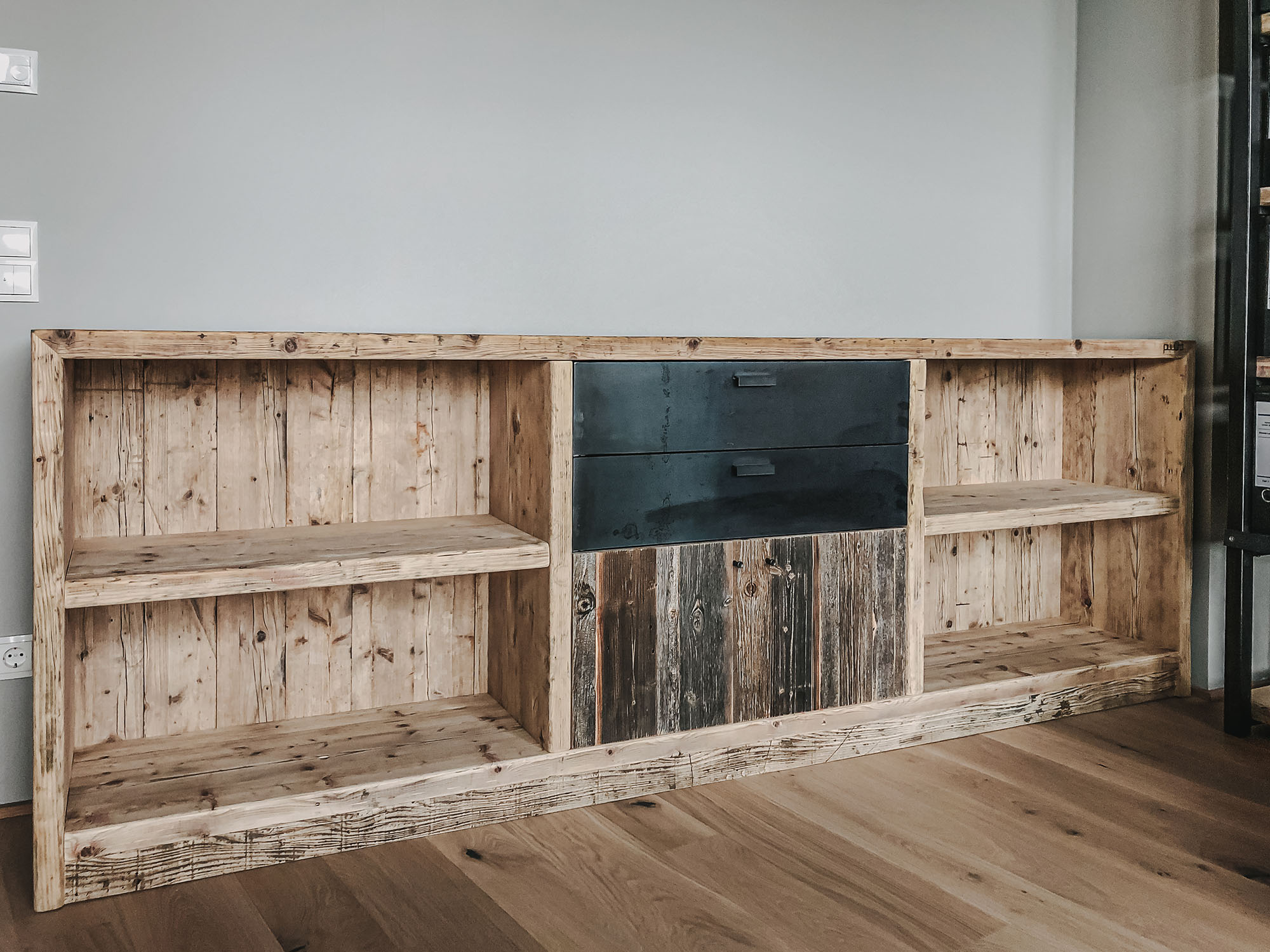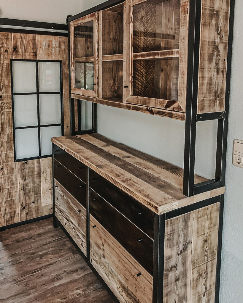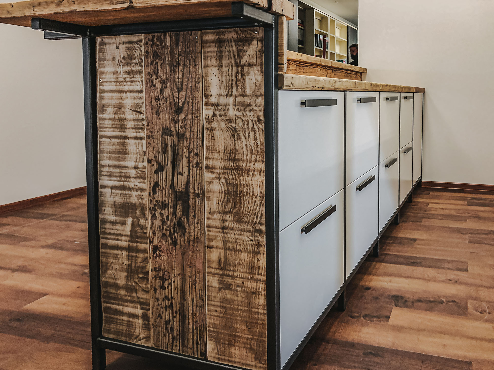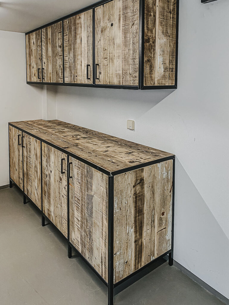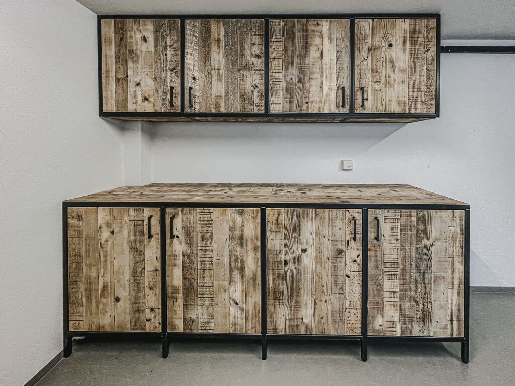 Mit Regalen und Schränken aus Holzbohle und Eiche gut organisiert.