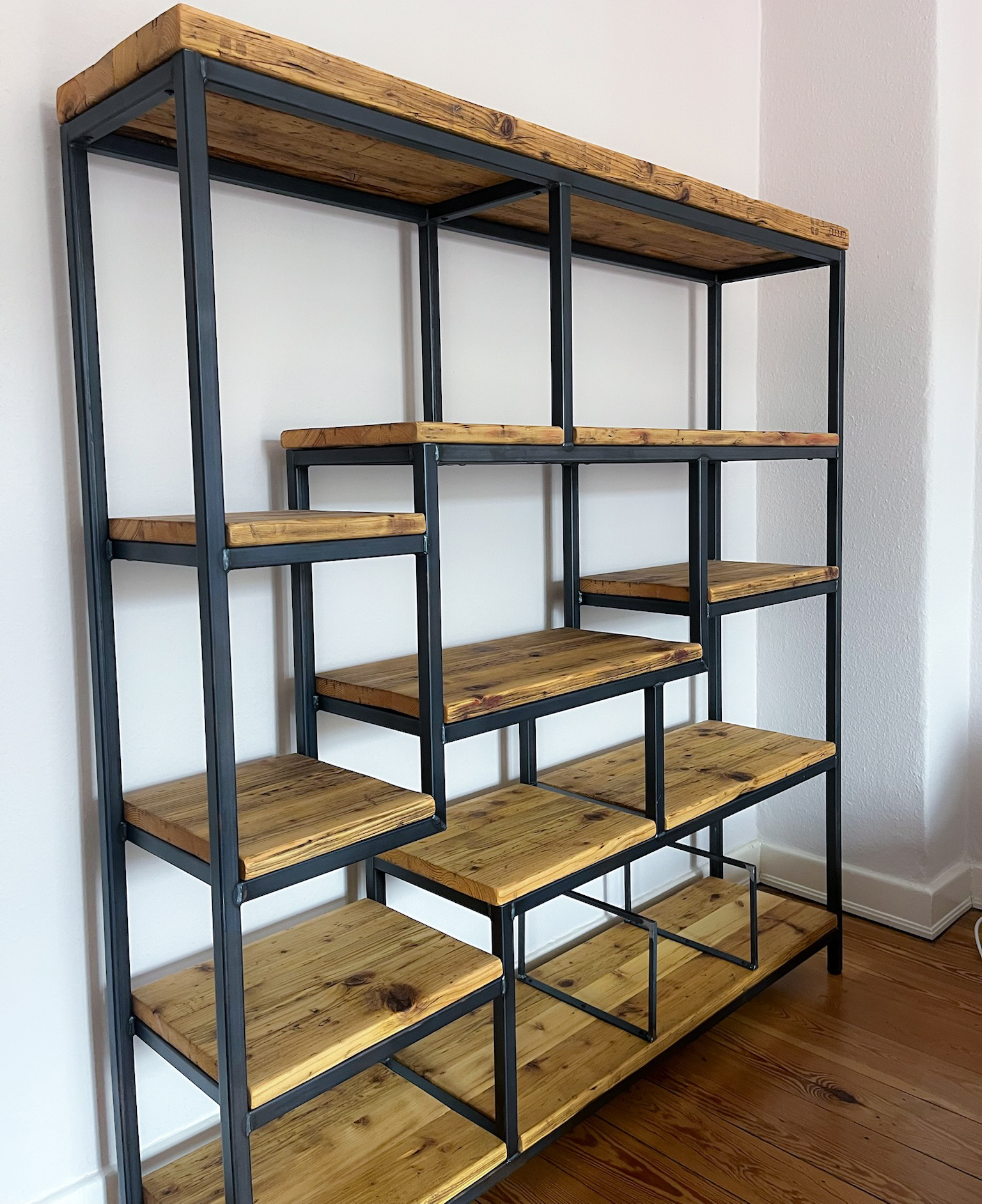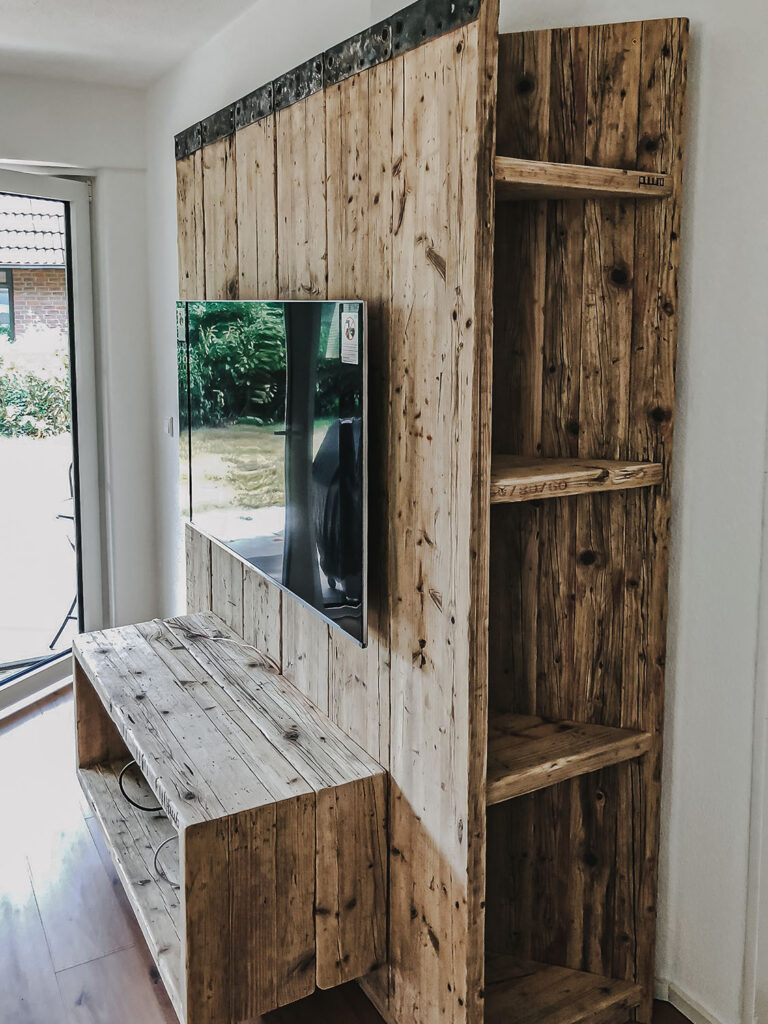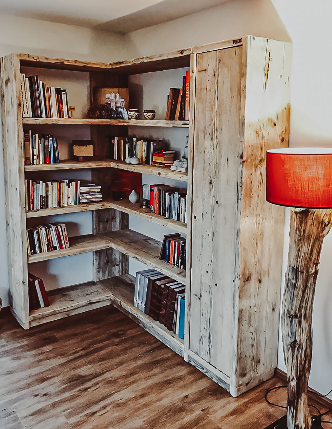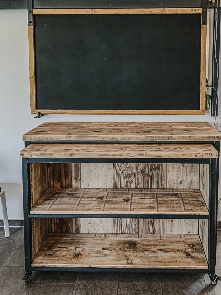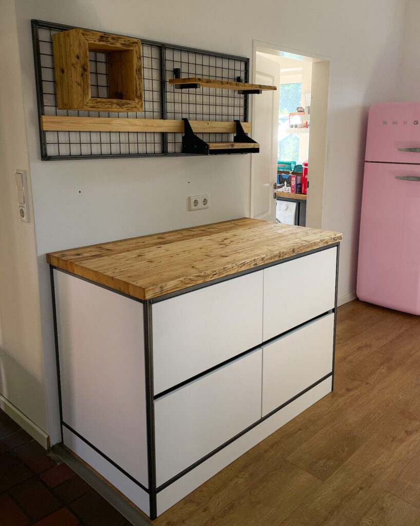Mit Regalen und Schränken aus Holzbohle und Eiche gut organisiert.