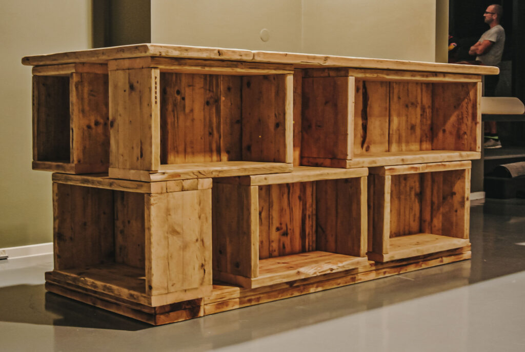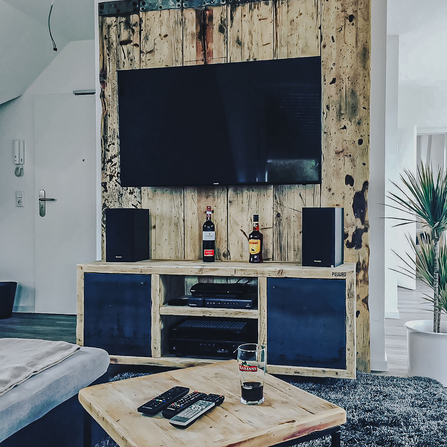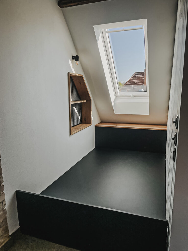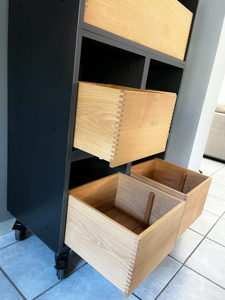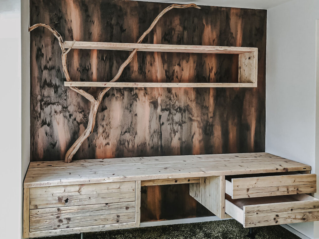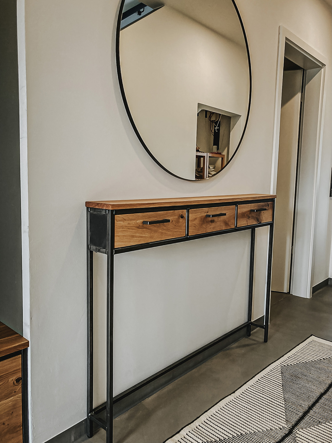 Mit Regalen und Schränken aus Holzbohle und Eiche gut organisiert.