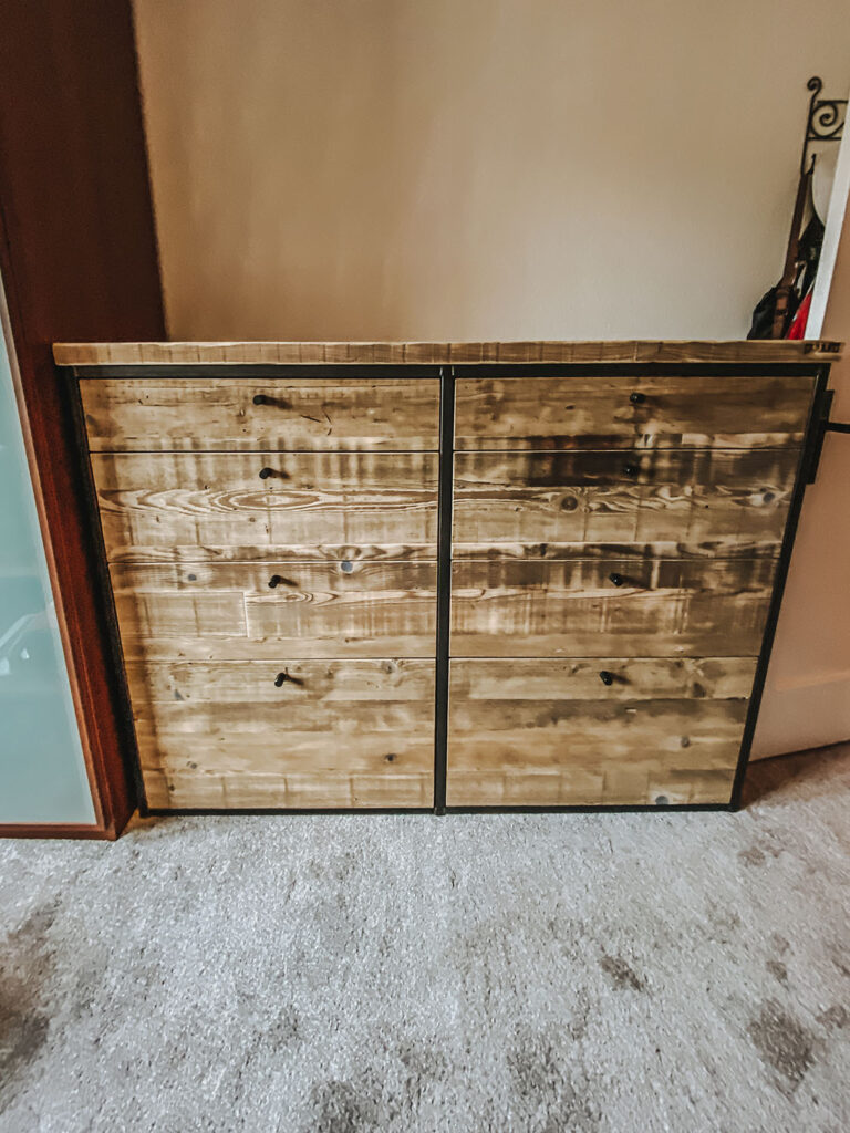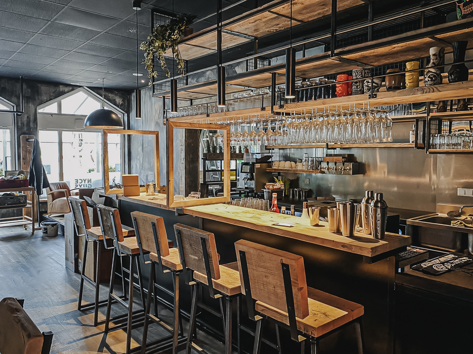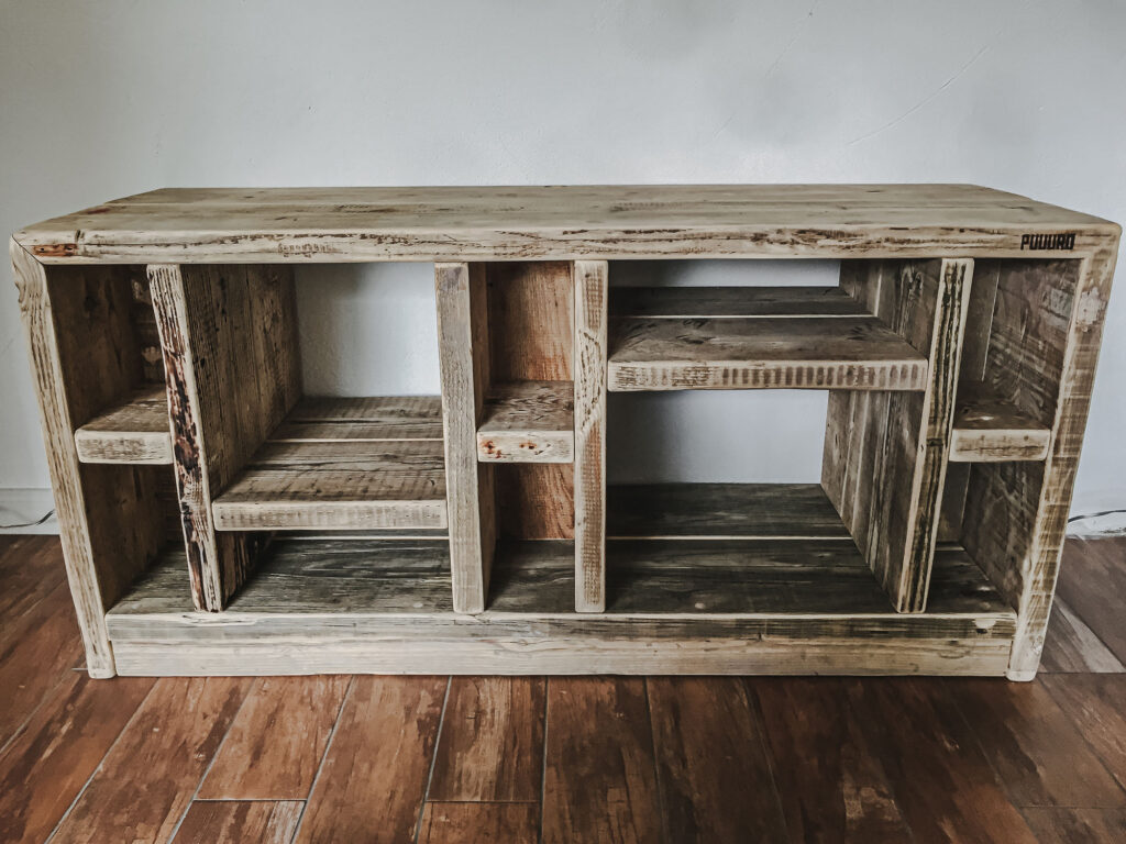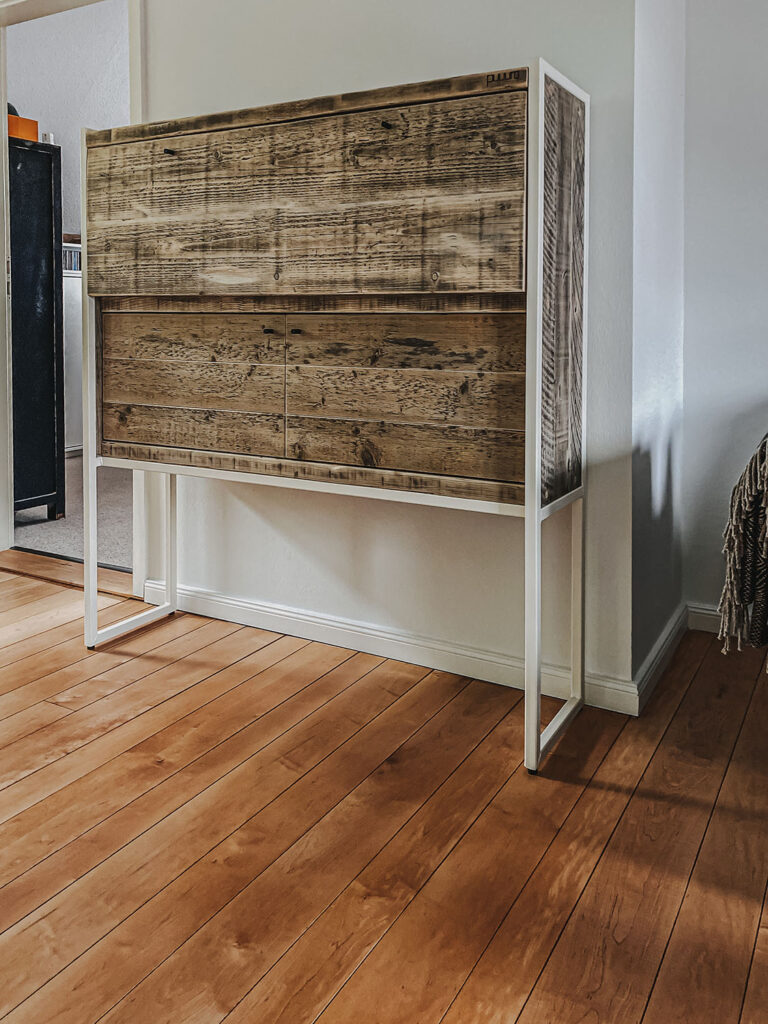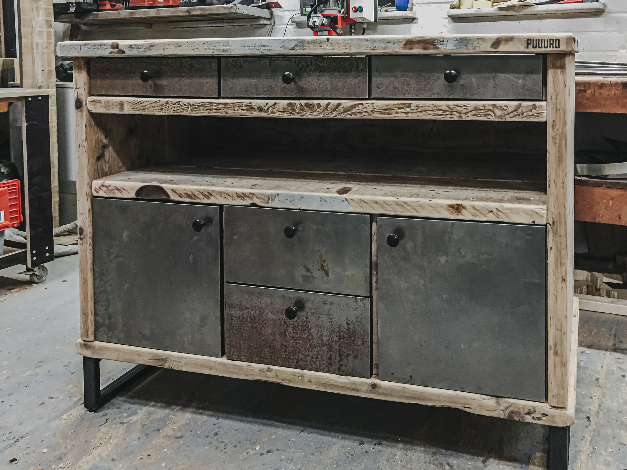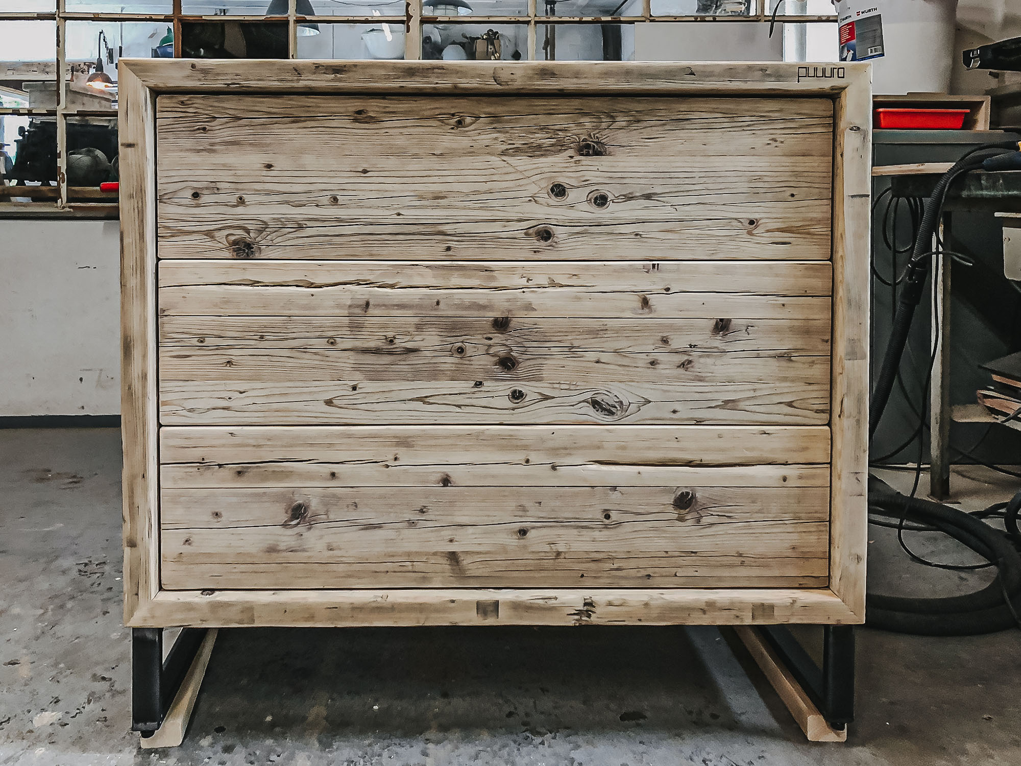 Mit Regalen und Schränken aus Holzbohle und Eiche gut organisiert.