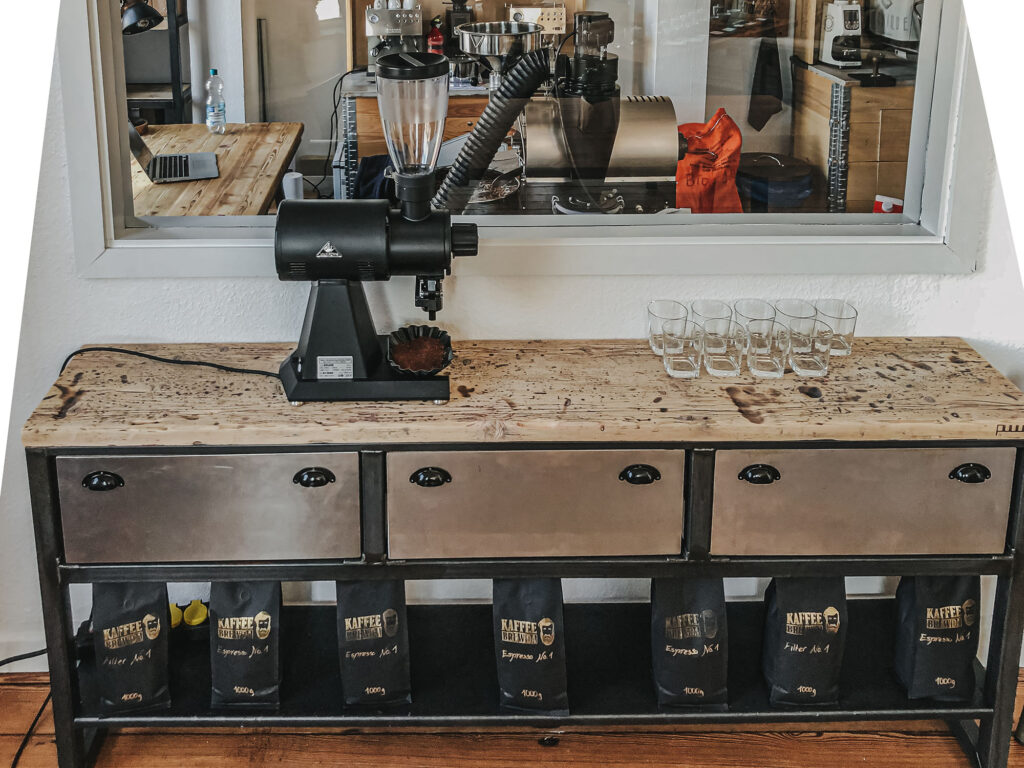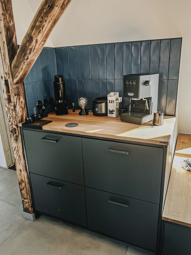 Ob 3 Meter Esstisch für die ganze Mannschaft oder komplettes Einrichtungskonzept – manchmal ist es gut zu schnacken und die Materialien zu erleben. Mit Kaffee natürlich, immer.